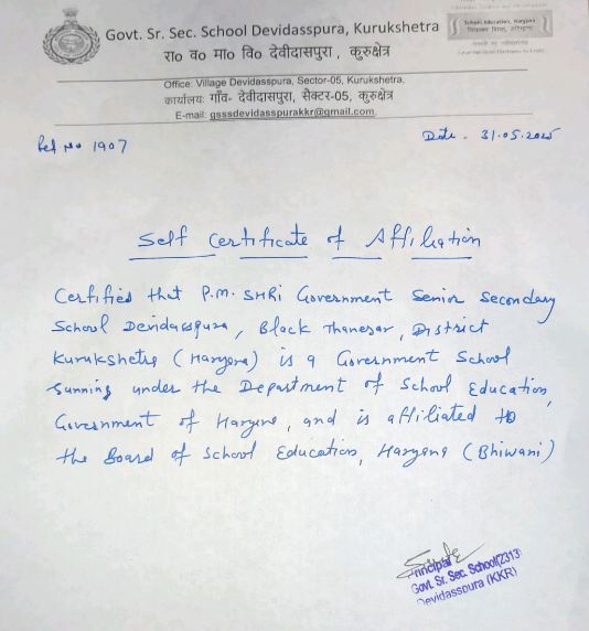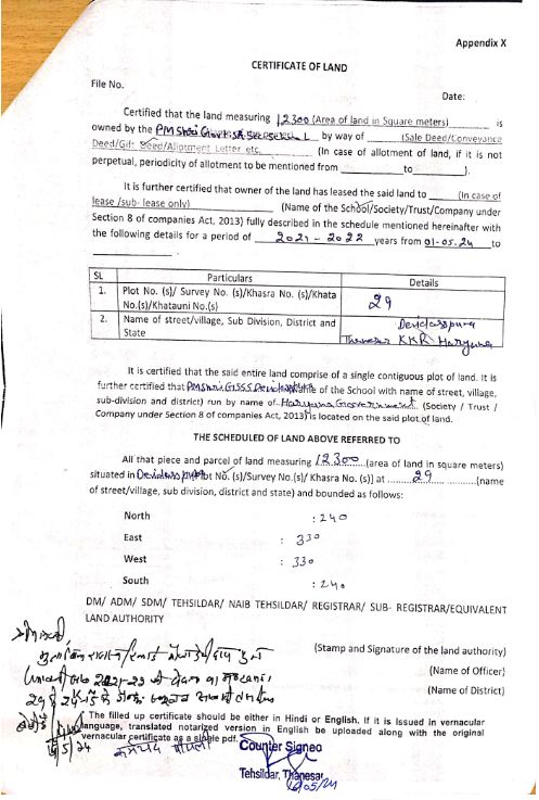 | 07 | COPY OF THE DEO CERTIFICATE SUBMITTED BY THE SCHOOL FOR AFFILIATION / UPGRADATION/EXTENSION OF AFFILIATION SELF CERTIFICATE BY SCHOOL |  |